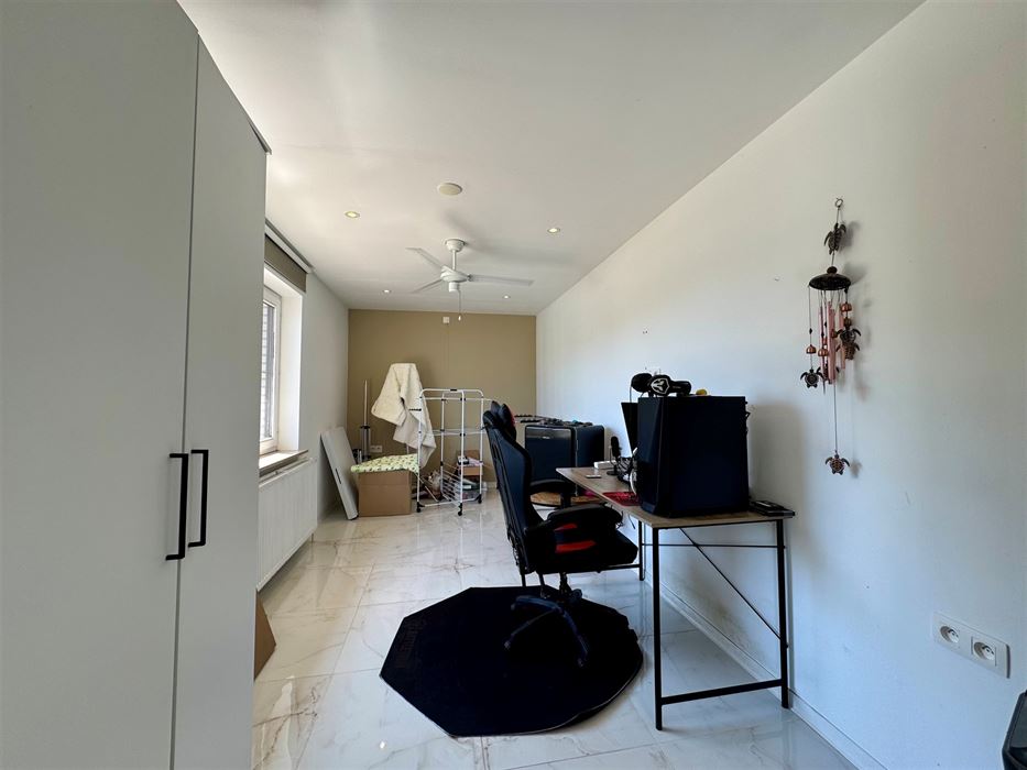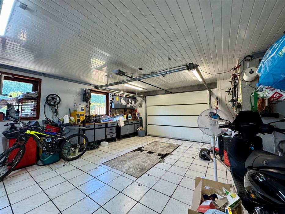 Aansluitend bevindt zich een tweede slaapkamer, momenteel ingericht als hobbyruimte en de inpandige garage. Van hieruit heeft u ook toegang tot de kelder.