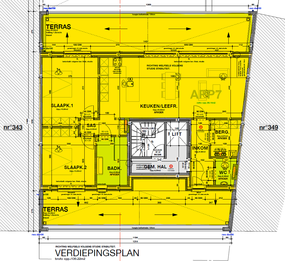 Het bovenste verdiep wordt een penthouse met 2 slaapkamers. Dit uniek appartement heeft omwille van de terrassen aan de voor- en achterkant een geweldig uitzicht over Maasmechelen. Het is ook het enige appartement op dit verdiep. U heeft hier dus geen buren.