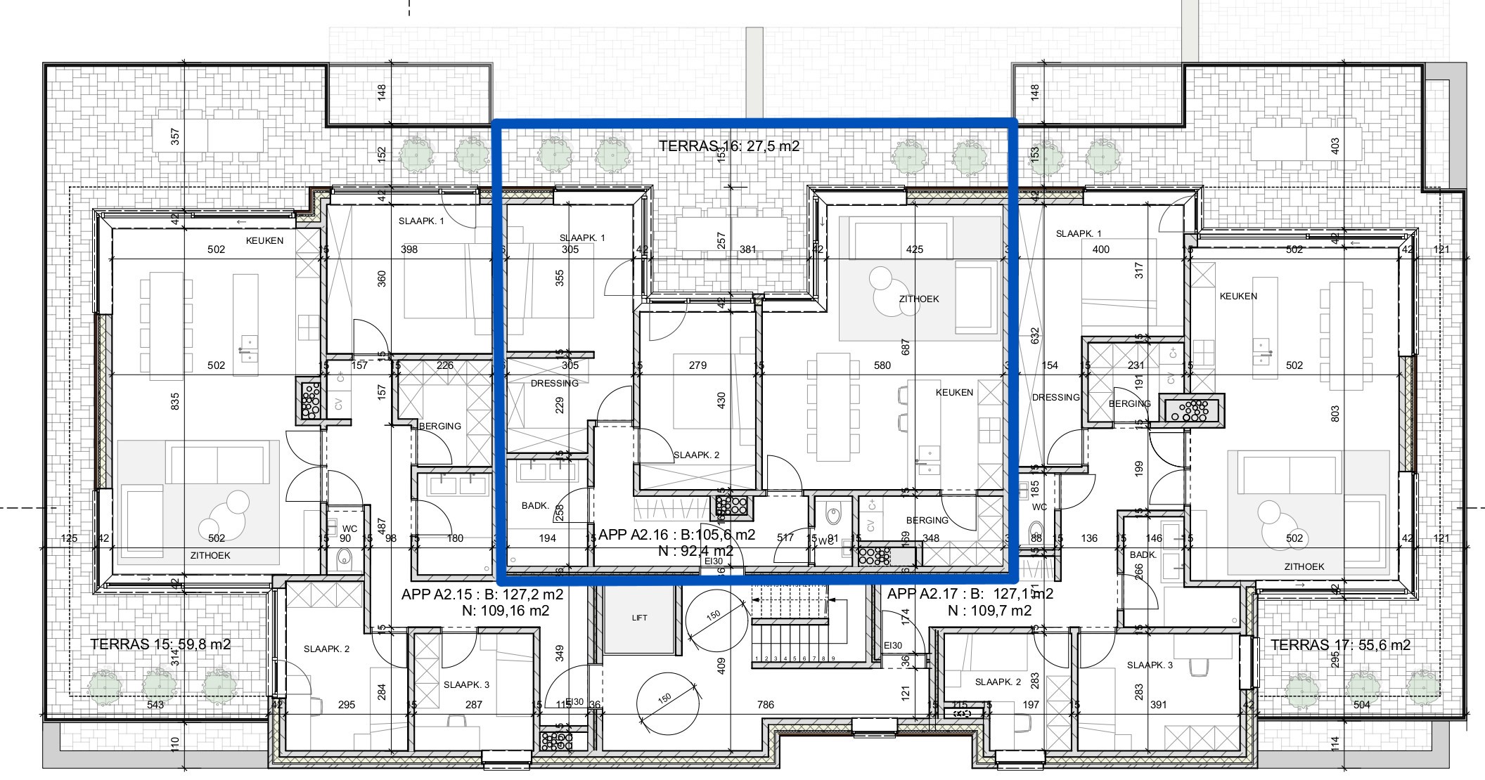 Onder het gebouw wordt een ruime parkeerkelder voorzien waar je je auto altijd veilig kan parkeren. Hier is voor elk appartement een eigen autostaanplaats en uitzonderlijk ruime kelderberging voorzien die beide verplicht dienen aangekocht te worden. Voor maximaal wooncomfort wordt er vanuit de kelder ook een lift voorzien die je meeneemt tot aan de voordeur van je woning.